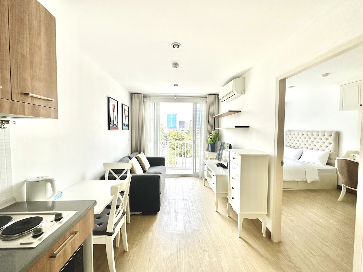 40 mq, monolocale con vasca da bagno e balcone LOFT-D4 / 3 persone / piscina sul tetto / vicino a RCA / vicino al mercato notturno dei treni / vicino a Tonglor