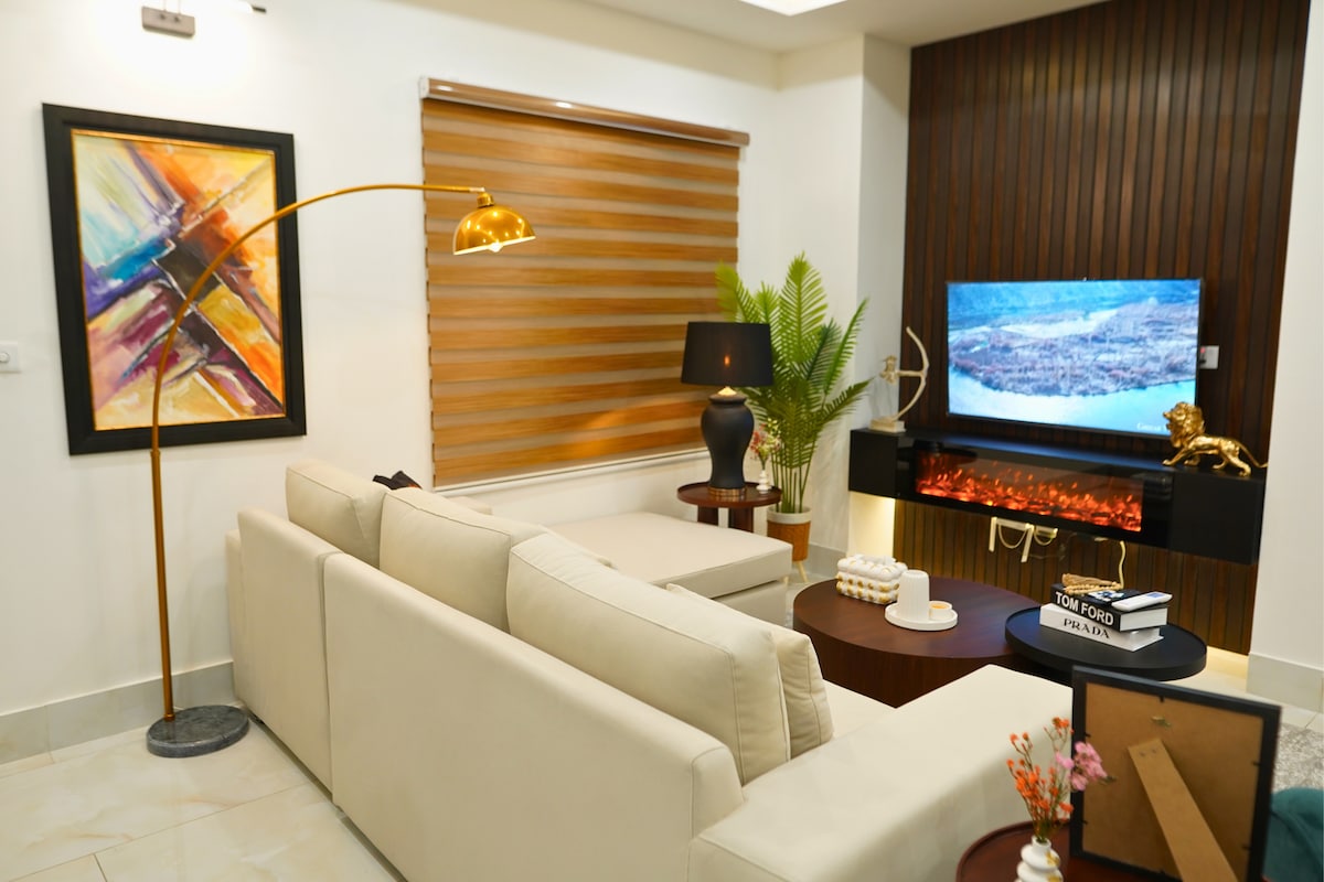 Elegante rifugio con 2 camere da letto | 11 Central | Serratura digitale 🛏️ Due letti king size e balcone privato 🔐 Serratura digitale | Self check-in 📺 Smart TV da 55” e Wi-Fi veloce (30 Mbps) 🍽️ Cucina moderna completamente attrezzata ❄️ Climatizzatori inverter e acqua calda 24 ore su 24, 7 giorni su 7 🪑 Interni eleganti e arredi di lusso 🏔️ Margalla, tramonto e vista sullo skyline 🚗 Parcheggio privato al piano interrato 📍 Islamabad centro | 8 min dal Centaurus Mall Perfetto per dirigenti e soggiorni raffinati in città. È richiesta la CNIC (18+). Vietato organizzare feste. Vietato fumare all'interno, solo sul balcone. Prenota subito!