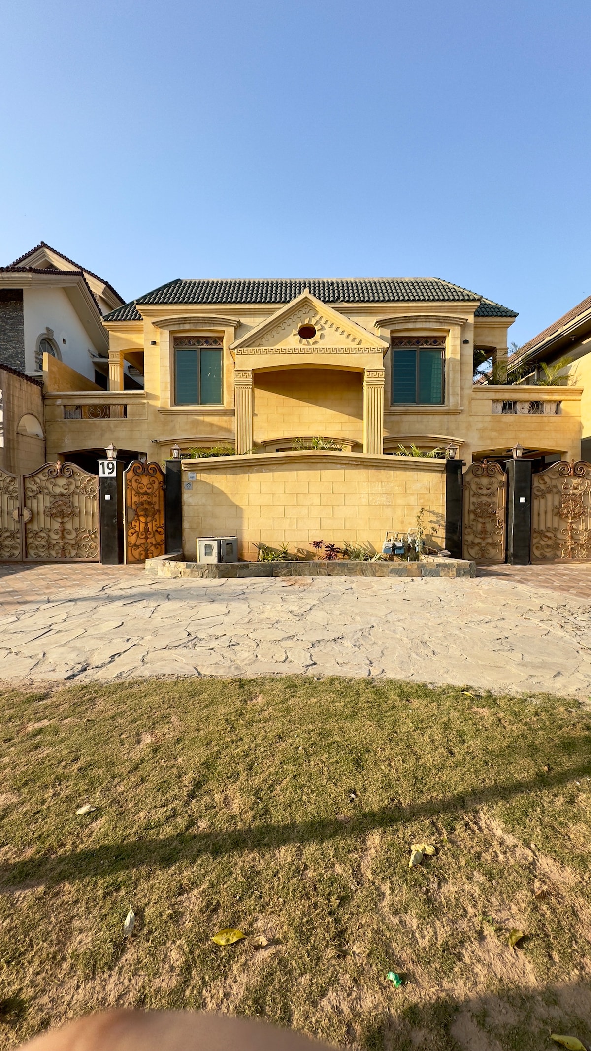 Nessun altro affitto batte questo sontuoso, in posizione centrale, sicuro e immerso nella serenità splendidamente progettato e arredato con gusto, residenza indipendente con 3 camere da letto con ingresso privato e parcheggio per famiglie, viaggiatori d'affari e chiunque sia alla ricerca di una casa di lusso reale @ Central Location. Goditi il fascino moderno e vintage di questa nuovissima villa reale. Arredi di design straordinariamente sontuosi, camere spaziose, verde, viste spettacolari e posto di lavoro. Grande e bellissimo giardino per ospitare riunioni.