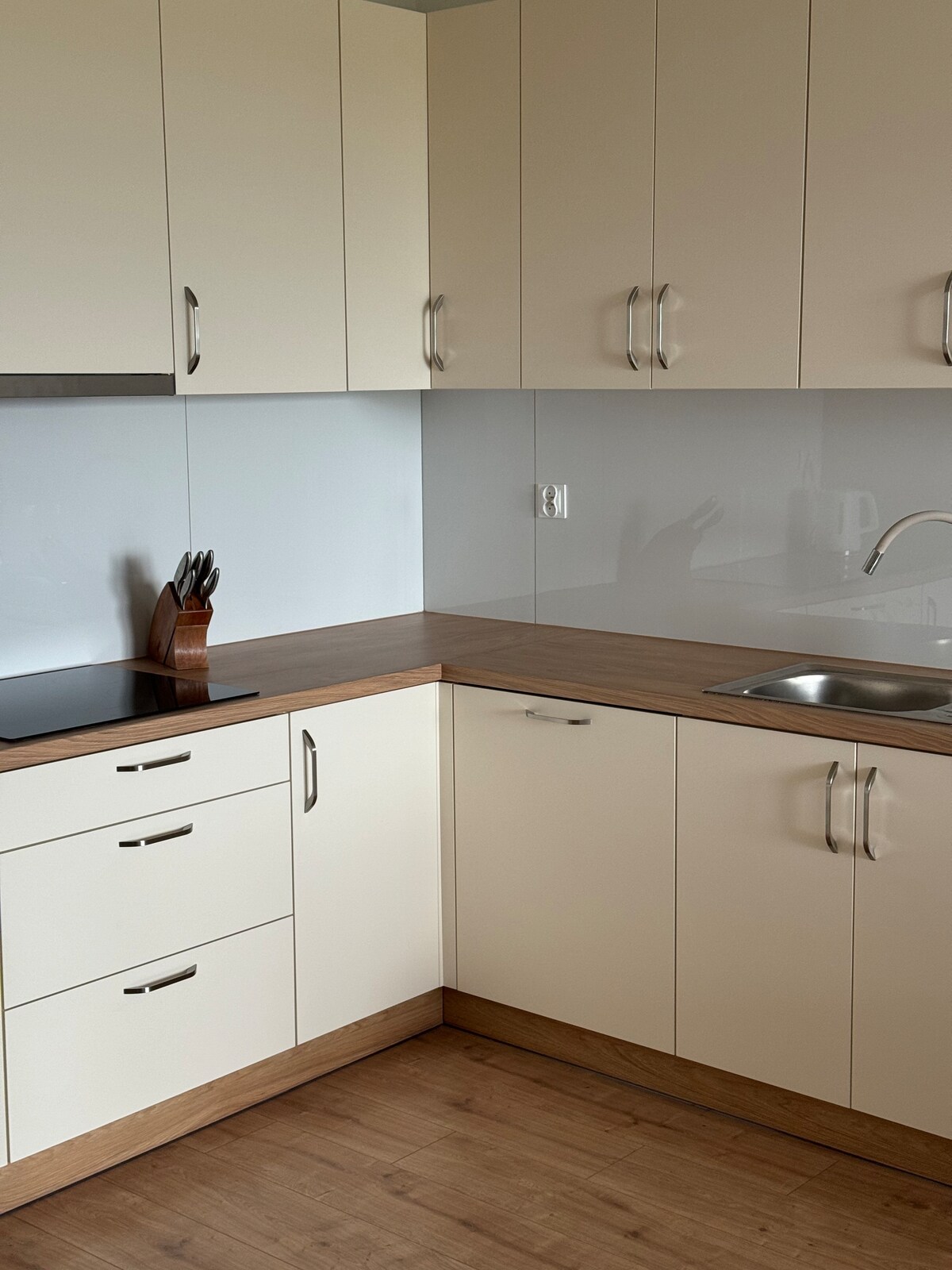 Apartament znajduje się w nowo wybudowanym bloku (2023r.) z windą, na drugim piętrze, z własnym miejscem parkingowym przed budynkiem. Posiada dwie sypialnie urządzone w podobnym, nowoczesnym stylu, z wygodnymi łóżkami kontynentalnymi. Pierwsza sypialnia ma duże podwójne łóżko, a druga dwa pojedyncze, z możliwością połączenia w podwójne. W salonie znajduje się rozkładana, wygodna sofa, a obok wyjście na duży balkon. Aneks kuchenny w pełni wyposażony. Przy bloku znajduje się plac zabaw dla dzieci.