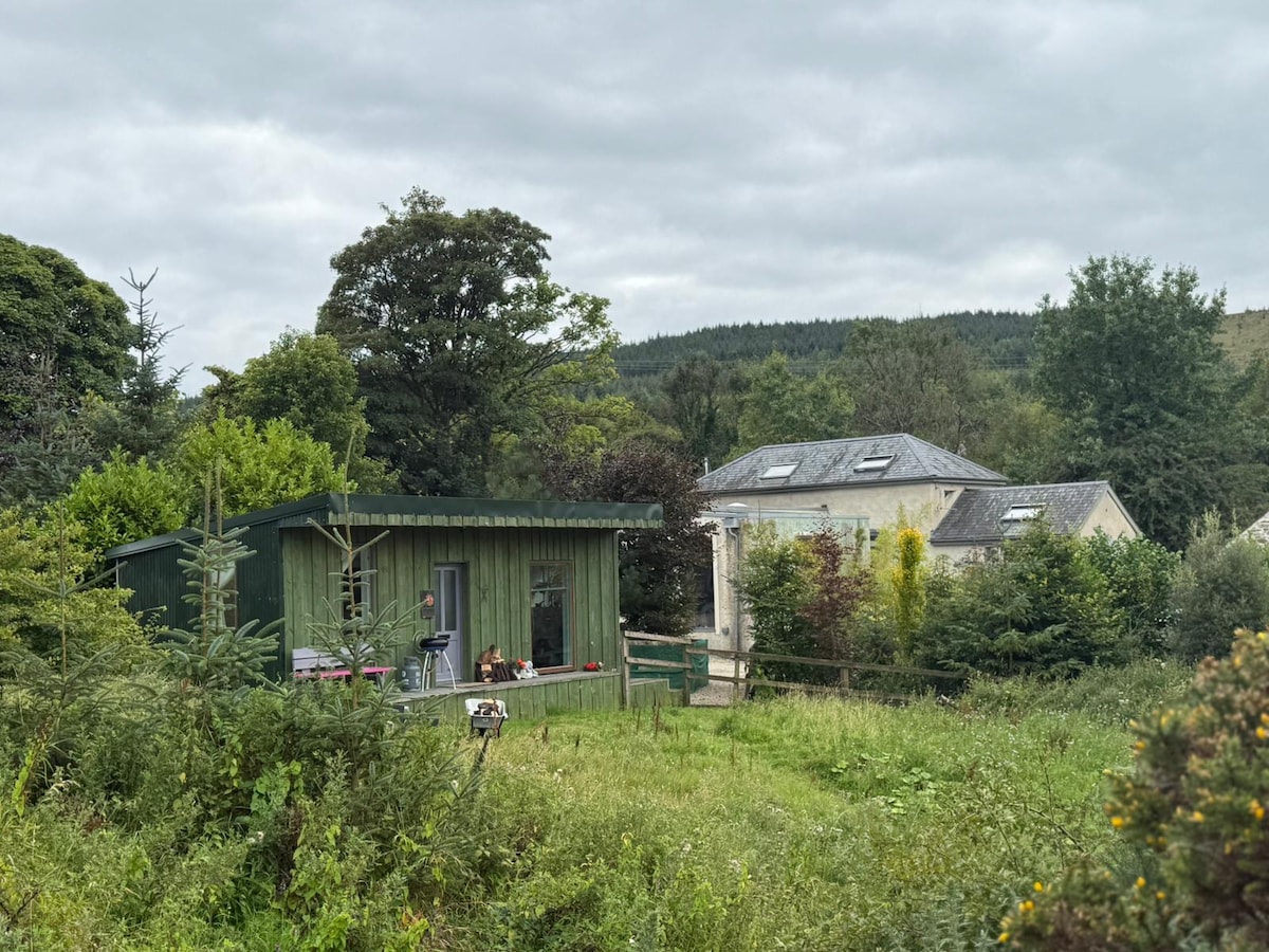 We welcome you to our peaceful one-bedroom cabin. Attached to the back of our home but completely self-contained, the lodge has its own patio and parking area and access to our gardens . Please note that a car is essential to get around and make the most of your stay. The cabin is warm and cosy with a small kitchen area for preparing simple meals , making it a perfect getaway for couples or solo travellers looking to unwind in nature, this is the perfect spot. We look forward to welcoming you.