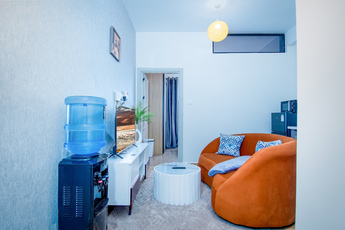 Concediti il lusso urbano nel nostro monolocale situato in posizione centrale, dotato di un sontuoso letto matrimoniale grande. Situato nel tranquillo e sicuro quartiere di Lavington, a soli 8 minuti a piedi dal vivace centro commerciale Junction Mall, il nostro edificio offre una vasta gamma di servizi, tra cui una piscina rinfrescante, una palestra completamente attrezzata, un incantevole focolare e un'area barbecue, il tutto all'interno di un cortile paesaggistico. Inoltre, goditi l'intrattenimento sulla nostra straordinaria TV da 70" con un abbonamento Netflix gratuito.
