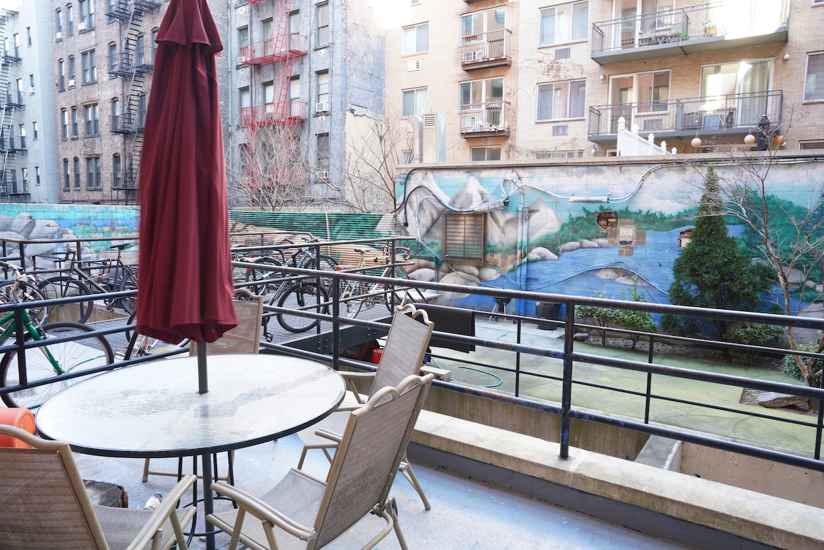 Camera soleggiata e moderna nell'East Village con vista sulla città