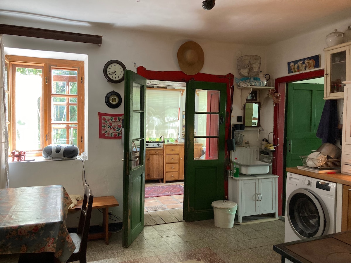 Una minicasa in cima a una vecchia cantina ai piedi della collina di Szent Gyorgy, nella regione vinicola di Badacsony. È stato recentemente ristrutturato in modo rustico ma moderno: un ampio letto matrimoniale, un bagno spazioso, una cucina ben attrezzata, un enorme patio e aria condizionata sono a disposizione per il tuo comfort. La sera, il tramonto dipinge d'oro le montagne della Valle di Tapolca. Il lago Balaton è a 10 minuti di auto panoramica e ci sono molte opzioni nelle vicinanze per escursioni e altre attività.