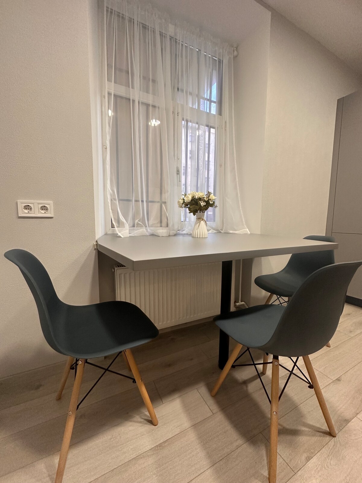Grazioso monolocale nuovo di zecca con ingresso privato al parco, situato proprio nel centro della città, in via Caka. Progettato con eleganza e dettagli moderni, questo monolocale è accogliente, soleggiato e molto tranquillo. Eppure, dietro le porte troverai una strada trafficata con caffè, boutique e supermercati. Sei proprio nel centro di Riga! Il centro storico dista meno di 3 km, raggiungibili con poche fermate di trasporto pubblico disponibili a portata di mano. Perfetto per lavoro o svago, può ospitare fino a 2 persone.