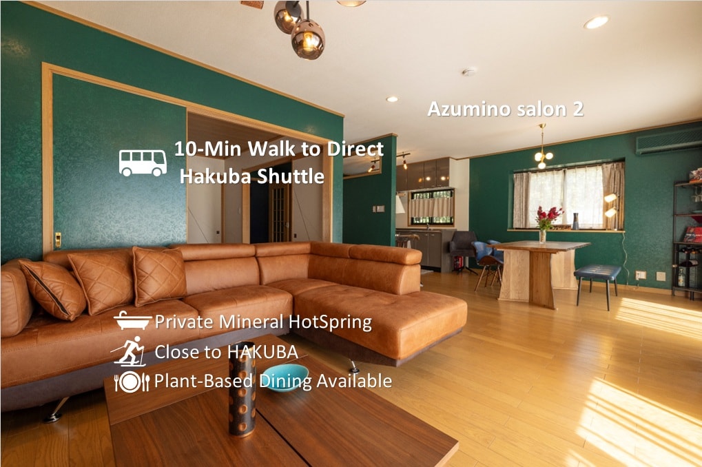 Le Sauna Villa è una moderna casa vacanze nella famosa zona di Wadano a Hakuba. Inaugurato nel 2023, dispone di tre camere da letto, un elegante soggiorno e una terrazza esterna coperta con zona pranzo e sistema home theater. Gli ospiti possono godere di una sauna privata, una vasca idromassaggio che funge anche da piscina fredda e un salotto all'aperto per rilassarsi dopo una giornata sulle piste o avventure estive. A soli 10 minuti a piedi dalla stazione sciistica di Happo e da ristoranti, caffetterie e bar. È il rifugio perfetto per famiglie e amici, tutto l'anno.