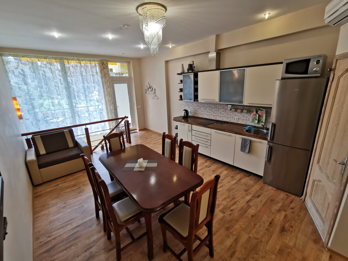 Un elegante appartamento con una camera da letto arredato di recente e dotato di servizi alberghieri nel cuore del centro storico. Dispone di un comodo letto matrimoniale, un divano , una cucina attrezzata con una varietà di tè, una scrivania polivalente per il lavoro e il tempo libero, bagno con doccia. Poiché l'appartamento si trova nel centro storico, è circondato da mercato della città vecchia, bar e incantevoli stradine. Ti verrà inviato un codice per inserire il tuo appartamento. Ti chiederemo una copia del tuo documento d'identità per l'app per il check-in online