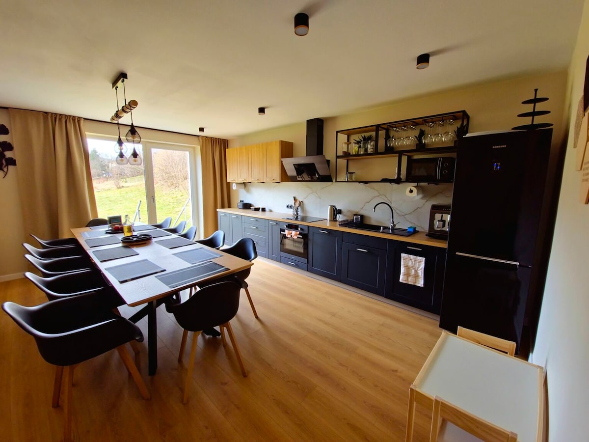 Abbiamo creato questo spazio per la tua famiglia, i tuoi amici e i tuoi cari. Questo spazio esclusivo di 300 mq è a vostra disposizione, che è suddiviso in 3 livelli e zone: svago (sauna, sala giochi, palestra e sala biliardo), giorno e lounge. La casa in affitto in montagna sorge su un terreno di 1 ettaro con un ruscello e può ospitare fino a 16 adulti e anche bambini piccoli. Ponikwa 36 ti offrirà il silenzio rurale, e i momenti insieme e un grande divertimento ti faranno venire voglia di tornare qui.