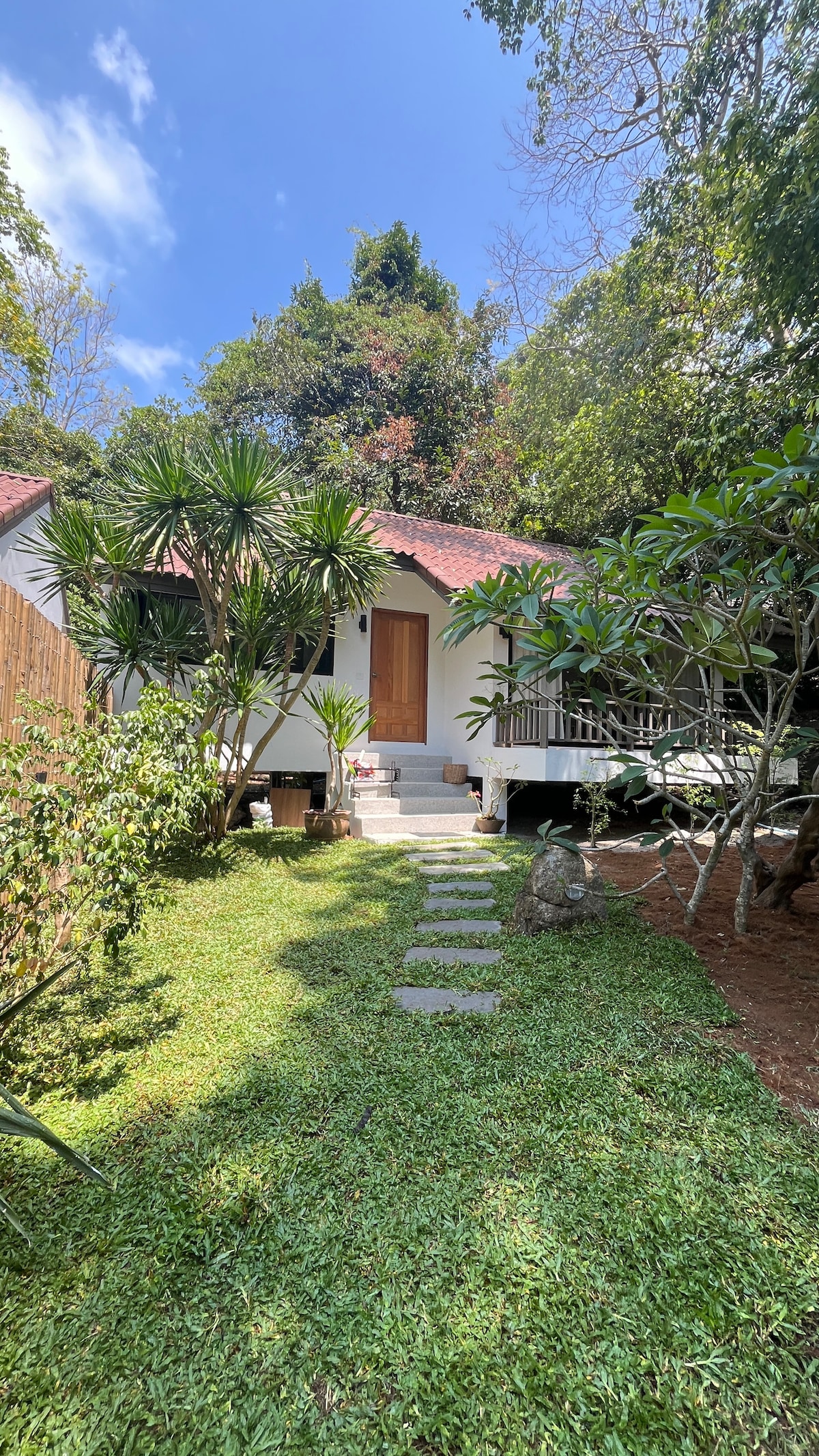 Una casa accogliente per una vacanza perfetta in una posizione tranquilla a Koh Phangan. Dispone di ampia veranda, cucina, ampio bagno con vasca idromassaggio, parcheggio privato, ampio giardino fiorito e piscina. La casa è completamente attrezzata: una cucina con lavastoviglie, un letto king-size, aria condizionata, Wi-Fi, SmartTV. Situato a pochi minuti dal centro di Thongsala. 7/11, mare e massaggi PureRelax raggiungibili a piedi. Dalla terrazza si possono ammirare splendidi tramonti. Un posto ideale per rilassarsi, fare esercizio e meditare.