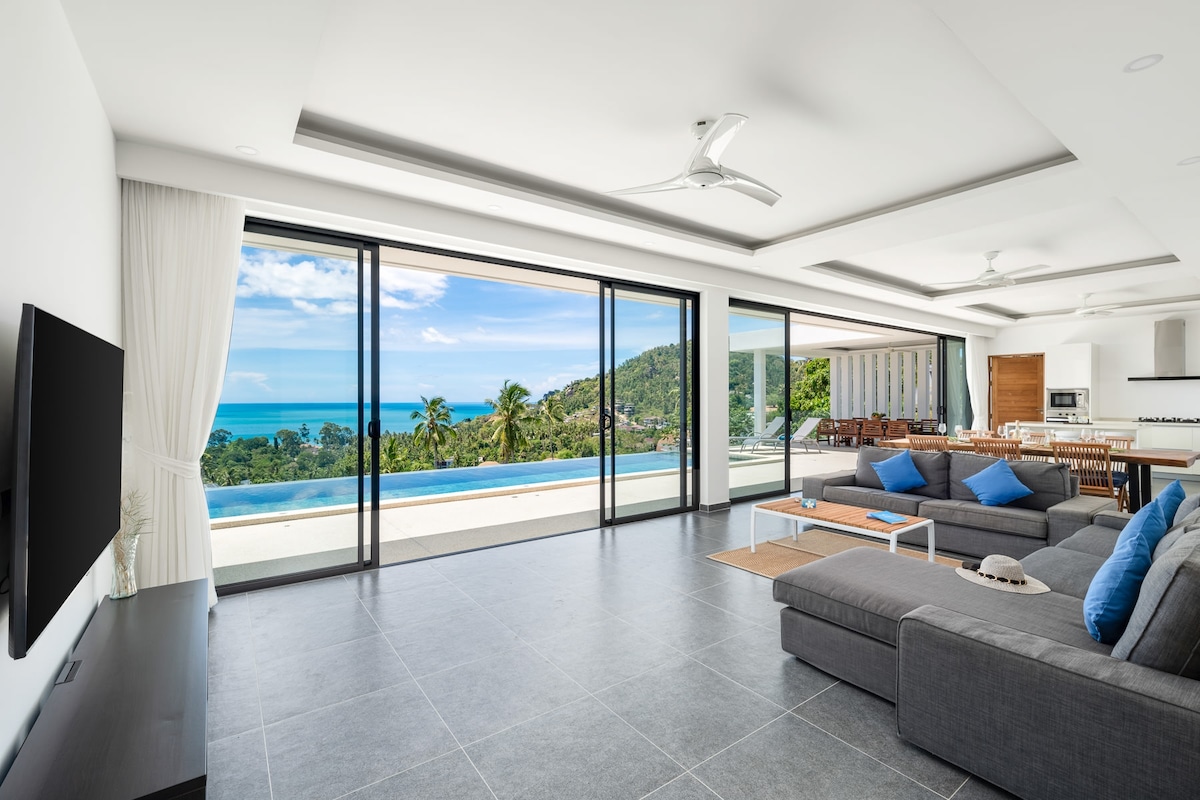 Situata in una posizione tropicale e tranquilla, questa villa è l'ambiente perfetto per coloro che desiderano esplorare tutti gli aspetti di Koh Samui pur soggiornando nella propria oasi privata. Dotata di 4 ampie camere da letto, sala cinema, palestra, tavolo da biliardo e piscina privata con magnifica vista sul mare, questa villa è la destinazione ideale per famiglie, gruppi ed eventi speciali che desiderano godersi la vita dell'isola tropicale durante la loro vacanza, che può ospitare comodamente fino a 8 adulti.
