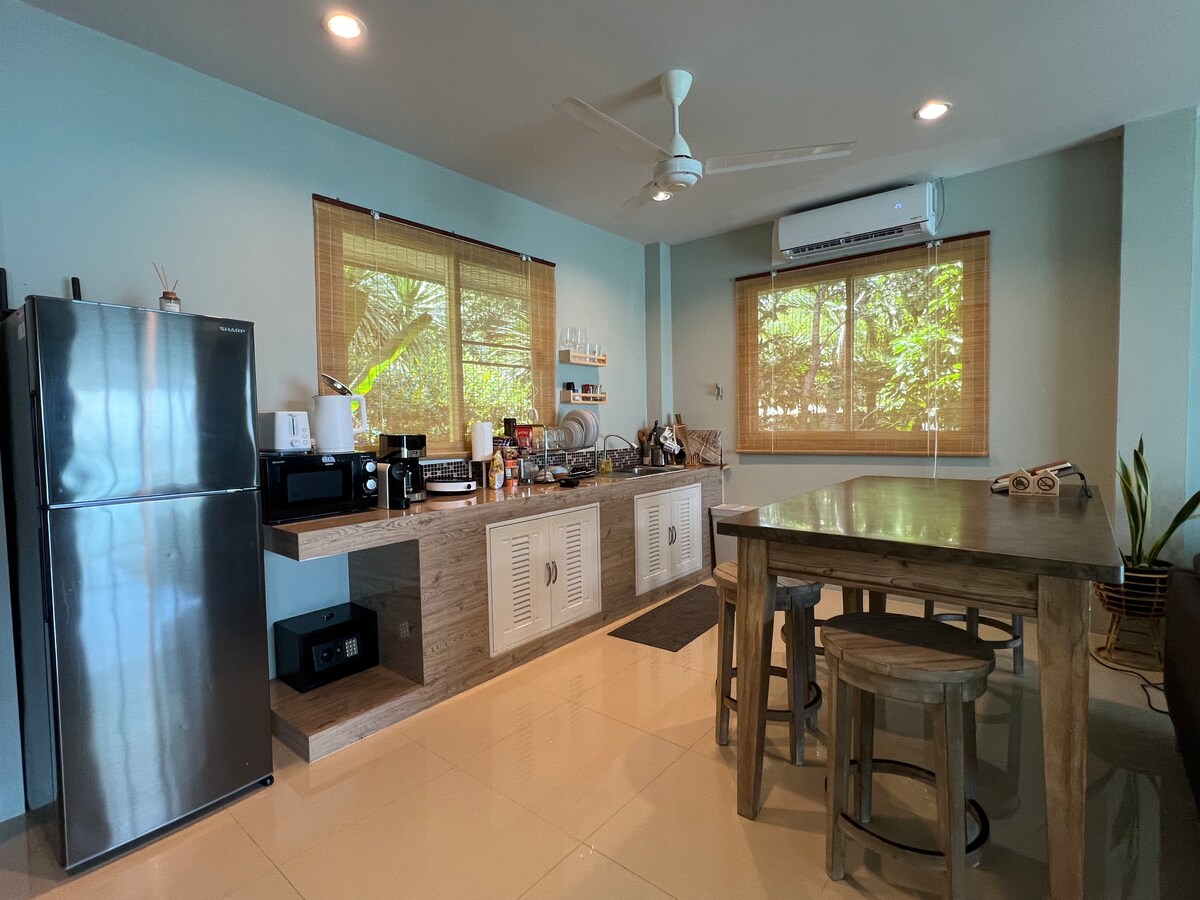 Questa nuova villa Y2 a Phuket, copre un'area di 500 metri quadrati, con vista sul giardino, piscina indipendente di grandi dimensioni, 4 camere da letto e 5 bagni. Credo che te ne innamorerai a prima vista. Entrando nella villa, l'arredamento è semplice e moderno, completamente rinnovato, molto pulito, fresco e confortevole. Ogni camera ha un bagno privato e una doccia, offrendo comfort e privacy. La spaziosa cucina è completamente attrezzata per soddisfare le vostre esigenze di cottura e pranzo. All'esterno della villa, la grande piscina è bella e raffinata, senza perdere il suo stile elegante, che ti fa sentire come se fossi in un'atmosfera straniera, il che è molto confortante. Entrando nel cortile, l'atmosfera è chiara e delicata, con il profumo della terra, la vegetazione lussureggiante e le sedie a sdraio sulle spiagge. Tutto è naturalmente elegante e la bellezza delicata aggiunge poesia e pittura a questa villa. E quando cala la notte, sotto le luci della piscina, l'intera villa è particolarmente affascinante, si può cenare all'aperto, con il suono della musica, con gli amici davanti a un bicchiere di vino, che meraviglia! Qui potrete godervi appieno una vacanza tranquilla e privata, liberandovi dal caos e dalle preoccupazioni della città, godendovi appieno le meraviglie e le benedizioni della natura. Questo è l'infinito piacere che vi offre la villa Y2 di Phuket! Rilassati.