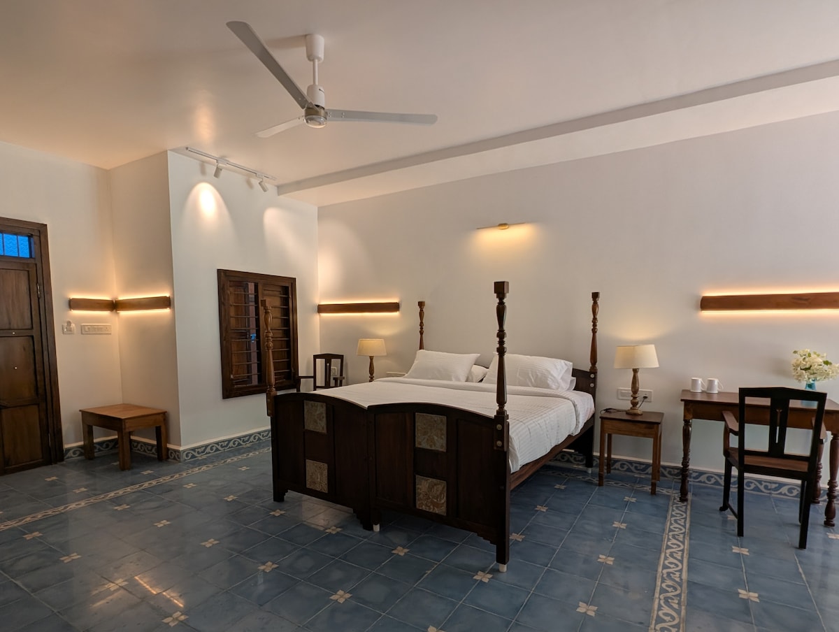Un'accogliente pensione che può ospitare fino a 4 ospiti che si affacciano sul giardino. È a pochi passi dal lago. Ti offriamo una camera singola e una camera familiare, un soggiorno e una sala da pranzo. C'è una piscina a sfioro adiacente al lago. Prepariamo l'autentica cucina casalinga del Kerala. Siamo a pochi km da NH 66, a 45 km dall'aeroporto e a 10 km dal centro città.
