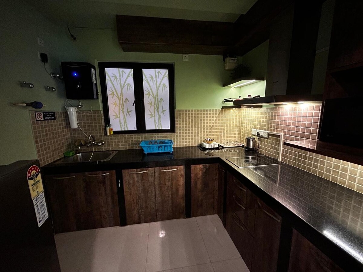 ● Government Certified 1Bhk Flat ( Legally licensed ) ●Goditi il tuo soggiorno in una dimora accogliente e raffinata. ● Vieni a scoprire la nostra zona giardino e terrazza esteticamente gradevole😀. ● Nota: 3° piano, senza ascensore (ma con scale facili e comode, promesso 😉) ●Nessun parcheggio 🤗 ● Servizi forniti: Ac Geyser Frigo Cura personale (spazzolino da denti, dentifricio, shampoo, sapone per il corpo) Ferro da stiro Cucina e utensili Zona pranzo Wifi ad alta velocità Spazio di lavoro privato Armadio Acqua