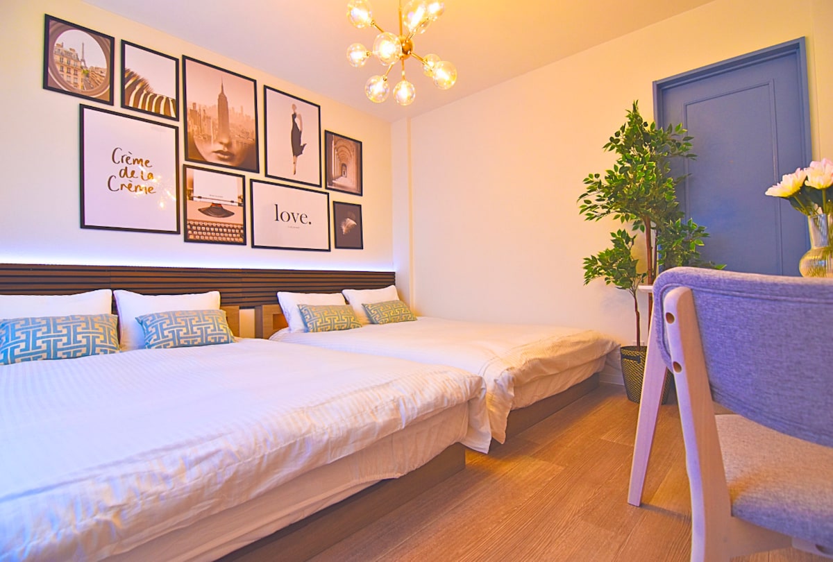 ◆Popular, fashionable, quiet, and safe area! Spacious, clean, and comfortable room with 2 double beds, 1 single bed, and 1 sofa bed. Enjoy a relaxing stroll in the neighborhood with many stylish cafes and specialty shops. Only a 7-minute walk to Shinsaibashi and 3-minute walk to 24-hour supermarket/pharmacies/convenience store. Easy access with 5-minute walk to Sakaisuji Honmachi St and 6-minute walk to Nagahoribashi St, which has escalators for convenient transportation even with heavy luggage.