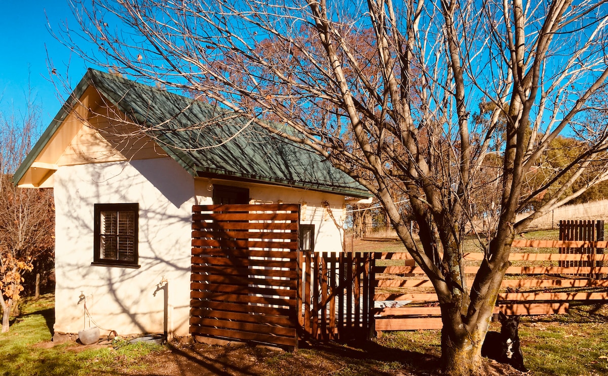 Chaffcutters Cottage - @chaffcutters_cottage - è incantevole e rustico. Il parcheggio è abbondante, gli animali domestici sono accolti calorosamente, il cielo notturno è ricco di stelle e la posizione è tranquilla. Deliziosamente ristrutturato, è confortevole e pratico in una splendida cornice rurale. Accogliente in inverno e climatizzata in estate, con una pittoresca veranda circondata da vigneti, perfetta per guardare il sole tramontare verso le Weddin Mountains con un bicchiere di vino in mano. A 15 minuti dalla splendida Canowindra.