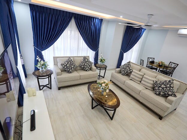 This apartment is located within Mariville Homes Estate, a gated residential community off Spintex Road, near Manet Junction. Conveniently situated just a 15-minute drive from the airport, the property offers a secure and serene environment. The estate is gated and monitored 24/7 by private security, ensuring controlled access. The apartment features two bedrooms and can comfortably accommodate up to four guests. Both bedrooms are en suite and feature king-size beds.