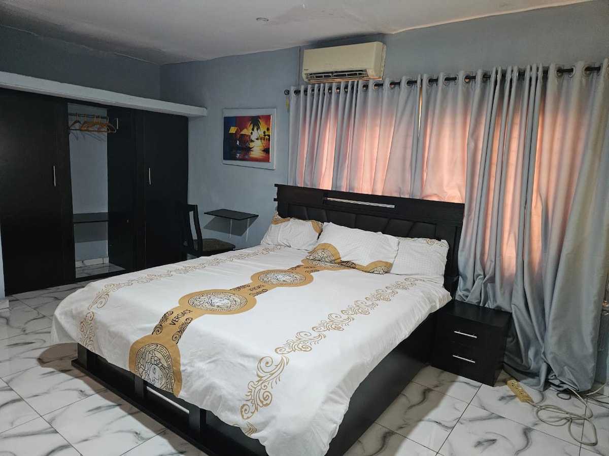 Goditi un soggiorno raffinato dove comfort, funzionalità e un tocco di lusso si fondono perfettamente. Spazioso ma accogliente, elegante ma pratico, questo rifugio in posizione centrale tra la vibrante energia di Lagos offre tutto per un soggiorno rilassante. Che si tratti di lavoro o di svago, ti piacerà l'equilibrio tra comodità ed eleganza sobria. A soli 15 minuti da MMIA, 20 minuti da Ikoyi, spesso più velocemente che da Lekki.