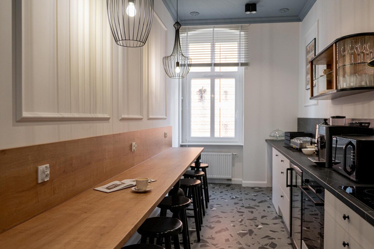 Gli appartamenti situati in un caseggiato sono decorati in uno stile armonico con la storia del palazzo. Ognuna si riferisce alla classica atmosfera del luogo attraverso elementi interni accuratamente selezionati: da mobili eleganti, pavimenti in legno, a eleganti finiture. Gli interni sono luminosi, spaziosi e dotati di tutti i servizi moderni per garantire un soggiorno confortevole agli ospiti.