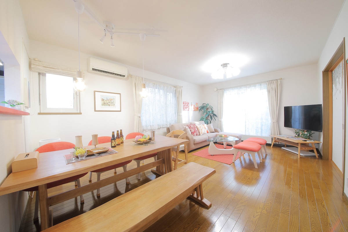 Three JR train stops from Sapporo Station. Free parking available. The nearest JR Hassamu Chuo Station is a six-minute walk from the accommodation. The room is on the first floor and is a one-bedroom, one-kitchen room. It can accommodate up to five guests. One DB (maximum two people) + one sofa bed + two futons. Comfortable for three guests (plus one or two small children). For four or more guests, futons will be laid out in the living room. Free parking available.