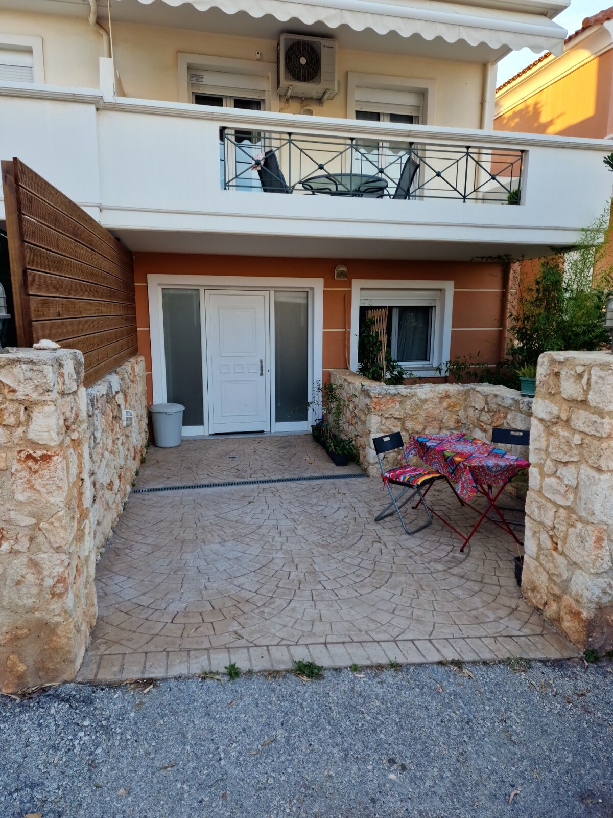 Accogliente e tranquillo piano terra - due camere- monolocale 35 m2, confortevole e completamente attrezzato per due persone, con un comodo letto matrimoniale, più cucina e bagno, e un bellissimo giardino esterno pieno di alberi e fiori. Si trova nella tranquilla zona di Korakies, a circa 10 minuti in auto dal centro di La Canea, dall'aeroporto e dal porto di Souda. Solo in 3 minuti di auto puoi visitare Venizelos Graves (magnifica vista panoramica sulla città), a 15 minuti dallo storico monastero di Gouverneto.