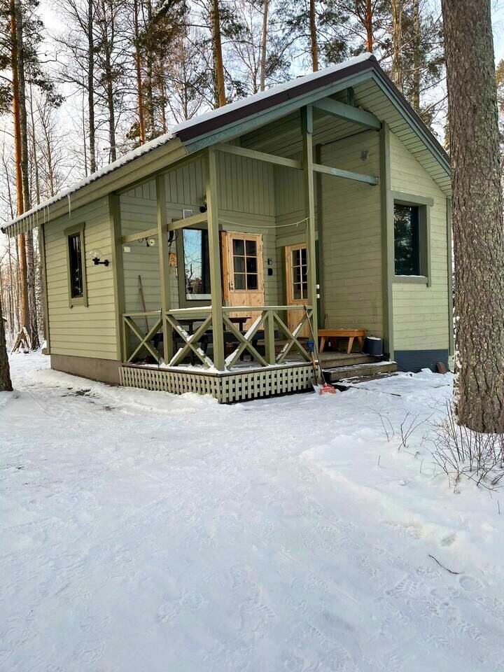 Talviasuttava rantamökki mukavuuksilla