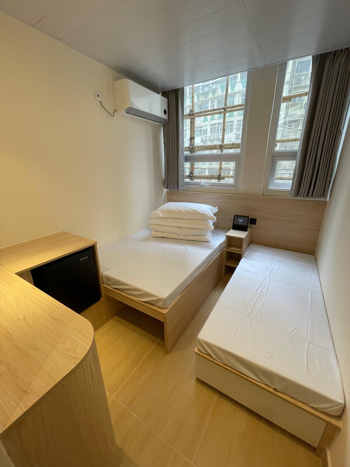 (UM3) Recentemente ristrutturato, a 1 minuto dalla stazione est di Tsim Sha Tsui, 2 letti matrimoniali (4 persone) con finestra, servizi igienici privati