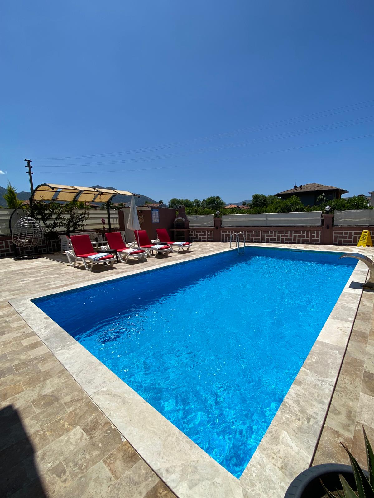 - La nostra villa dispone di piscina privata di 32 m², giardino privato, 4 camere da letto, 5 bagni e soffitta. Può ospitare fino a 9 persone. - La villa si trova in una posizione perfetta, a 100 metri dal centro di Dalyan e a 150 metri dal fiume Dalyan. - La manutenzione del giardino e della piscina della villa viene effettuata regolarmente. Sono disponibili Wi-Fi e ricevitore satellitare. - La villa è completamente attrezzata con tutto il necessario per il tuo soggiorno. Inoltre, puoi chiamare per qualsiasi necessità e domanda durante la tua vacanza. - Costruito nell'aprile 2025