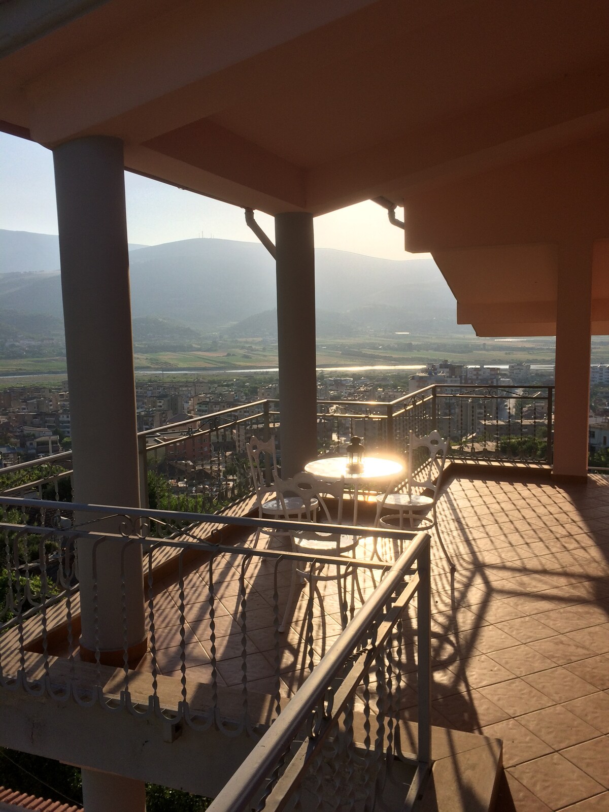 This is my childhood house, recently renovated for my family's holiday. It's located in a quiet neighborhood, below the castle of Berat, which is only 10 min away on foot. It offers a wonderful view over the valley, city, river and mountain. You'll love sitting on the terrace or patios, enjoying the view and the colours of sunrise/sunset, while having breakfast/dinner or just relaxing sipping wine. I'd suggest you to book for at least 2 nights, to have time to discover the charming Berat.