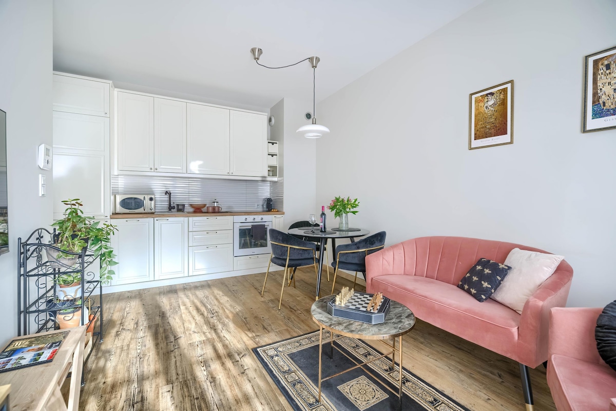 Un appartamento elegante e moderno in via Rakowicka è una proposta che soddisferà le aspettative degli ospiti più esigenti. Gli interni spaziosi e luminosi sono dotati non solo di elettrodomestici funzionali, ma anche di accessori decorativi eleganti. L'appartamento è composto da una camera da letto di buon gusto con un letto grande, un bagno elegante con una spaziosa cabina doccia e un moderno angolo cottura con tavolo da pranzo.