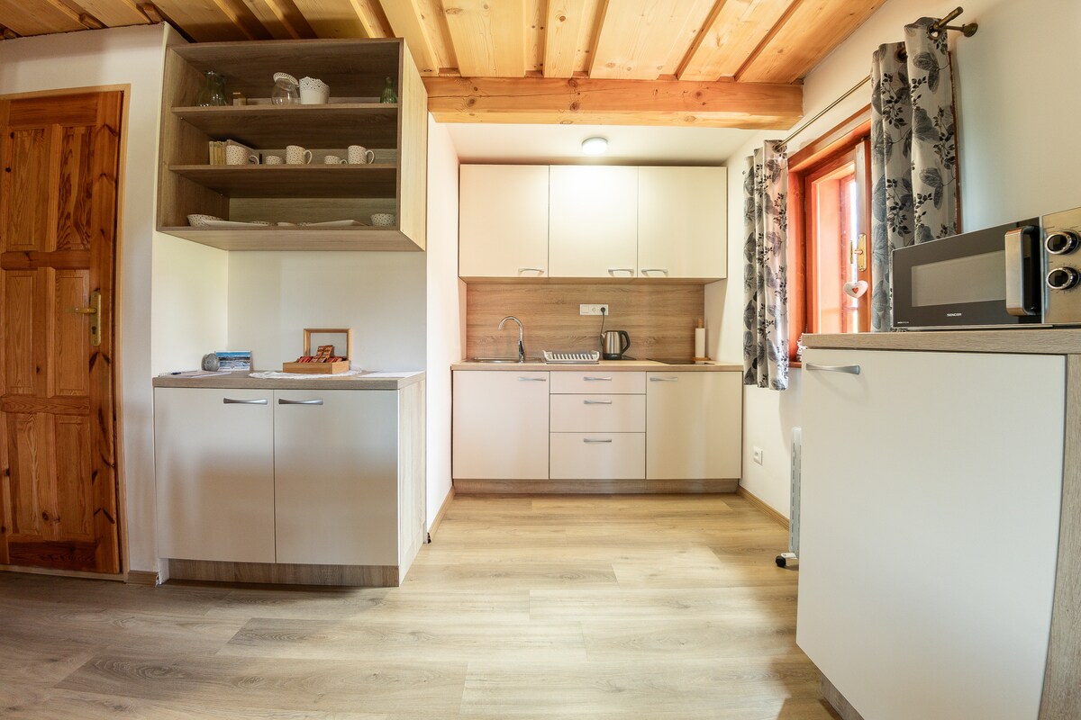 Un moderno cottage in legno, ristrutturato con cura, ai margini del villaggio, offre un ambiente tranquillo con vista sui Bassi, Alti e Occidentali Tatra. La casa in legno originale è stata ampliata con cura e dotata di servizi moderni, combinando il fascino rurale tradizionale con il comfort. Il cottage può ospitare comodamente cinque persone in letti veri e propri. È la scelta ideale per una vacanza all'insegna di escursioni, sci o relax nelle acque termali, tutte a 30 minuti di auto.