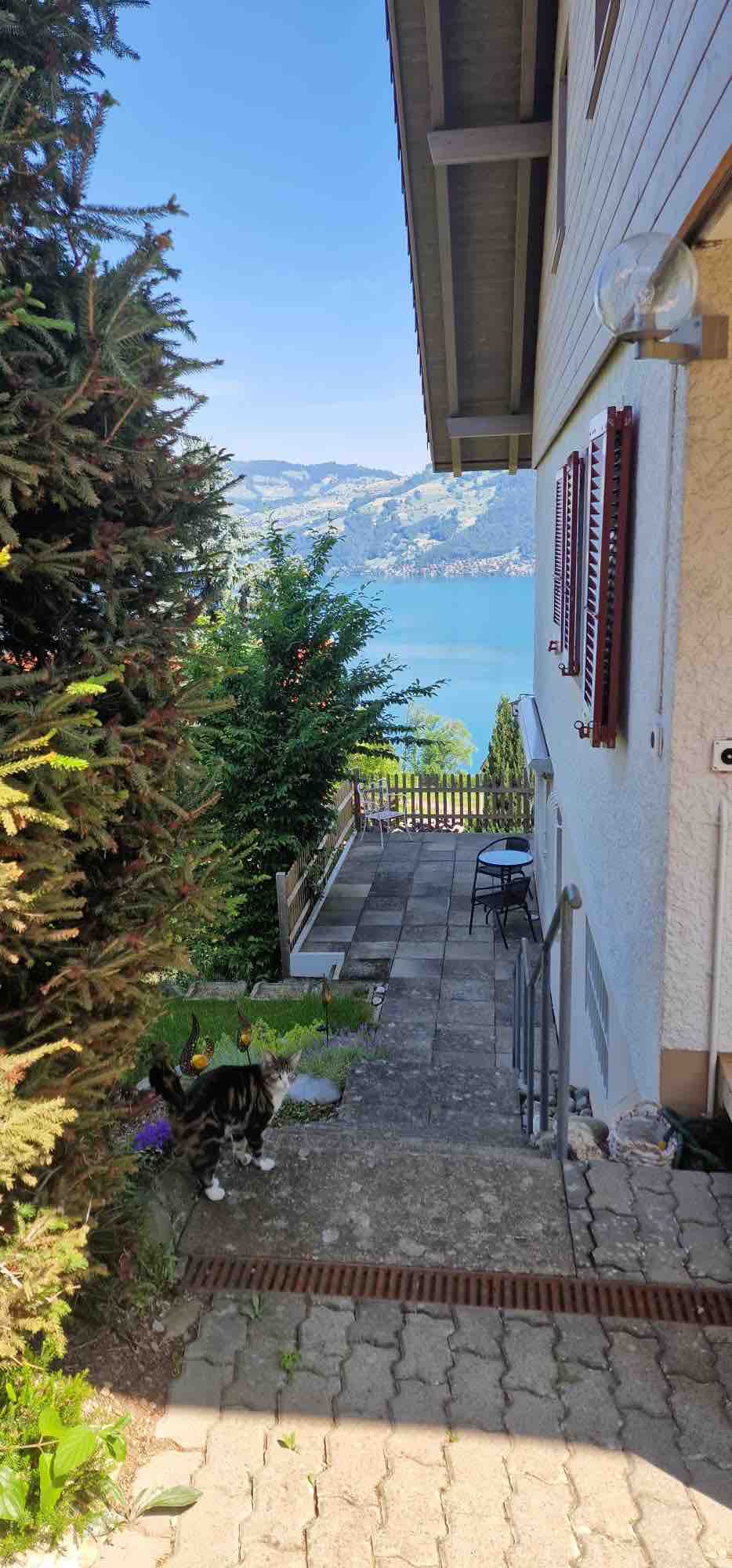 Das moderne und komfortable Studio mit eigener Dusche/WC und Kochnische ist im UG eines Einfamilienhauses. Es hat gemütliche Aussensitzplätze mit Seesicht und wunderschönem Panorama. Es liegt in einem ruhigen Dorfteil und ist idealer Ausgangspunkt für Ausflüge auf Berge oder den See. Ideal für 2 Pers. (auf dem Bettsofa könnten zusätzlich 1 - 2 Kinder schlafen). Zudem: kleine Grillstelle, Panoramakarte (div. Vergünstigungen) In der Nähe: Busstation (4 Gehmin.), Dorfladen, Sportplatz, Wanderwege