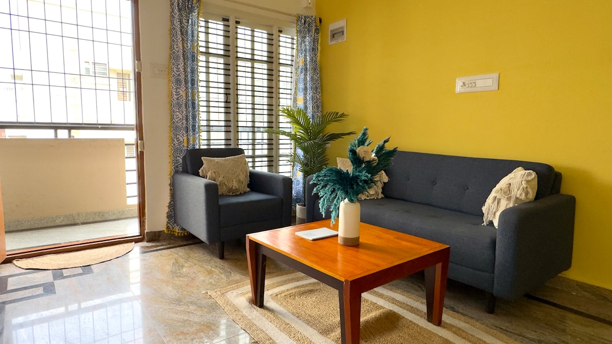 Welcome to our Lakeside apartment! Experience modern comfort in Bangalore's serene setting. Relax in our cozy 2 BHK flat with AC (in one bedroom). Enjoy seamless streaming with upto 100mbps WiFi. Enjoy the convenience of free car parking, available inside the premises, making your commute effortless. Indulge in complimentary tea and coffee, and rest on premium mattresses with quality linens. Shampoo and body gel are provided for a worry-free stay. Enjoy comfort and convenience at its best!