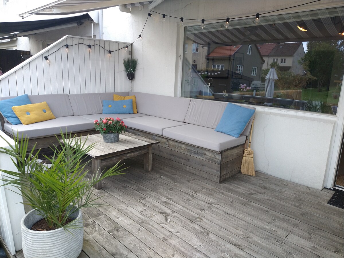 Casa a schiera adatta ai bambini con tanto spazio per un massimo di 12 persone. 5 camere da letto, dove 2 delle camere hanno un divano letto matrimoniale. Veranda isolata con pompa di calore e schermo per proiettore. Una delle camere da letto dispone di TV e PS4. Cucina ben attrezzata e tanto spazio intorno al tavolo da pranzo. Terrazza con barbecue, salottino e zona pranzo. Due bagni con doccia. Lavatrice e asciugatrice. Parcheggio per un massimo di 3 auto fuori dall'ingresso. A 7 minuti di auto da Dyreparken (zoo di Kristiansand) e da Sørlandssenteret (centro di Kristiansand). A 10 minuti dal centro di Kristiansand. Buon servizio di autobus.