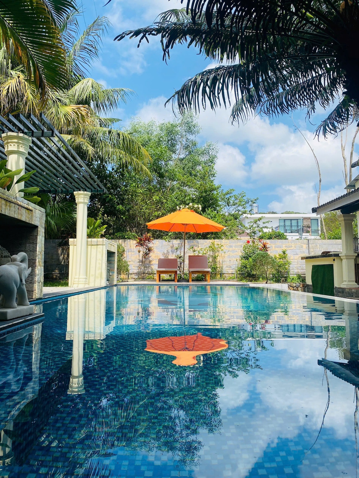 Rilassati e ricaricati in quest' oasi di quiete ed eleganza. Soggiorna nella nostra villa con 5 letti e 4 bagni a Kep, progettata con tranquillità e un rifugio indimenticabile per famiglie, amici o gruppi numerosi. Perfetto per 12-20 ospiti. Situata sulla strada principale di Kep, ma progettata per la privacy, la pace e la sicurezza, gode di una grande piscina con pergolato per cene stellate, barbecue, cucina completa e vegetazione lussureggiante. Circondato da alberi, è una fuga perfetta per famiglie e gruppi. Prenota subito per un soggiorno rilassante e indimenticabile!