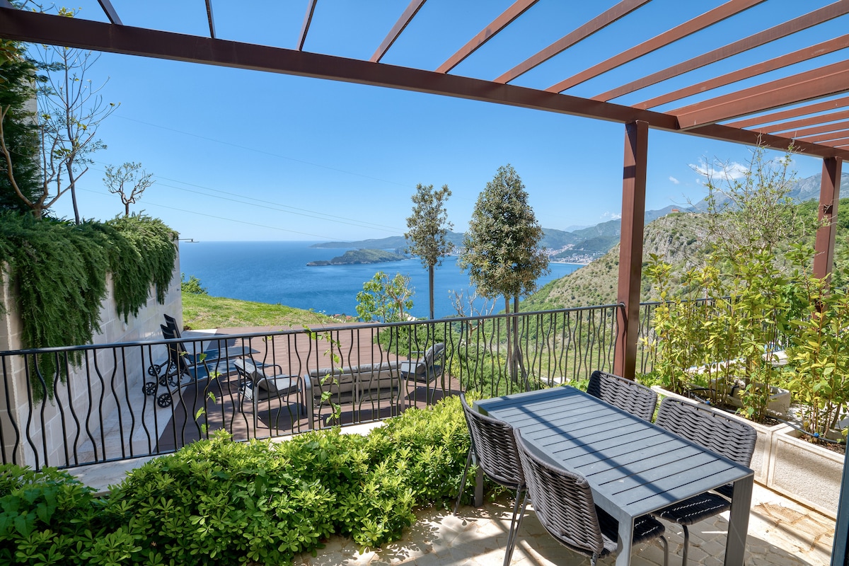 Un comodo appartamento ben attrezzato in una tradizionale villa con facciata in pietra che si affaccia sull'Adriatico. Si trova nel villaggio di Reževići, tra Sveti Stefan e Petrovac. Situato vicino a monumenti storici e culturali e a bellissime spiagge: Skočiđevojka, Rijeka Reževića, Drobni pijesak e Perazića do, con una splendida vista sul mare. Il nostro giardino, ricco di flora tipica locale, offre un vero paesaggio mediterraneo, ideale per un soggiorno all'insegna del relax e del divertimento.