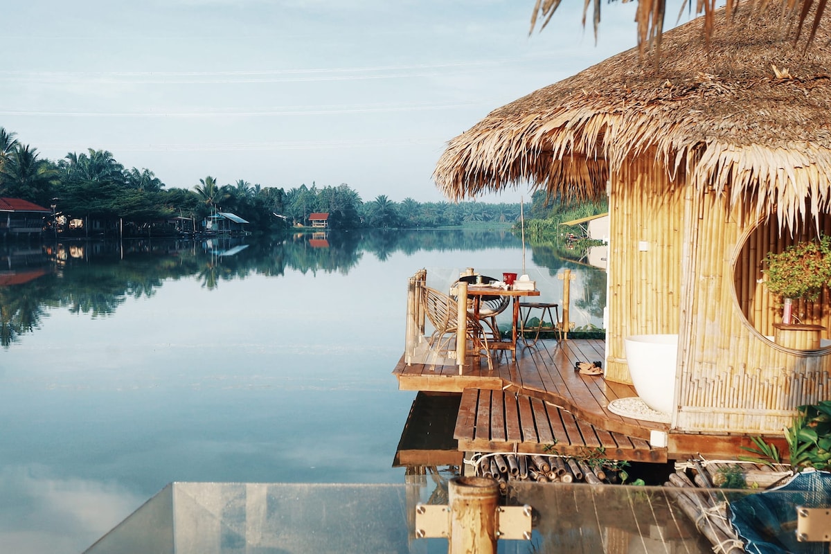La casa in legno si trova in un giardino sul fiume circondato dalla natura. Goditi l'aria fresca e pulita, l'assenza di inquinamento e l'atmosfera tranquilla e privata. Gli ospiti possono utilizzare biciclette gratuite per girare nel giardino e scoprire lo stile di vita locale. Puoi contattare un taxi per viaggiare e andare all'aeroporto, al porto e ad altre isole. Non ci sono mezzi pubblici o ristoranti nelle vicinanze, ma è possibile chiamare un'auto o ordinare cibo con Grab. La colazione è a pagamento. Comodo per chi guida o noleggia un'auto. Il parcheggio è gratuito. A circa 20 minuti dall'aeroporto e dalla città.