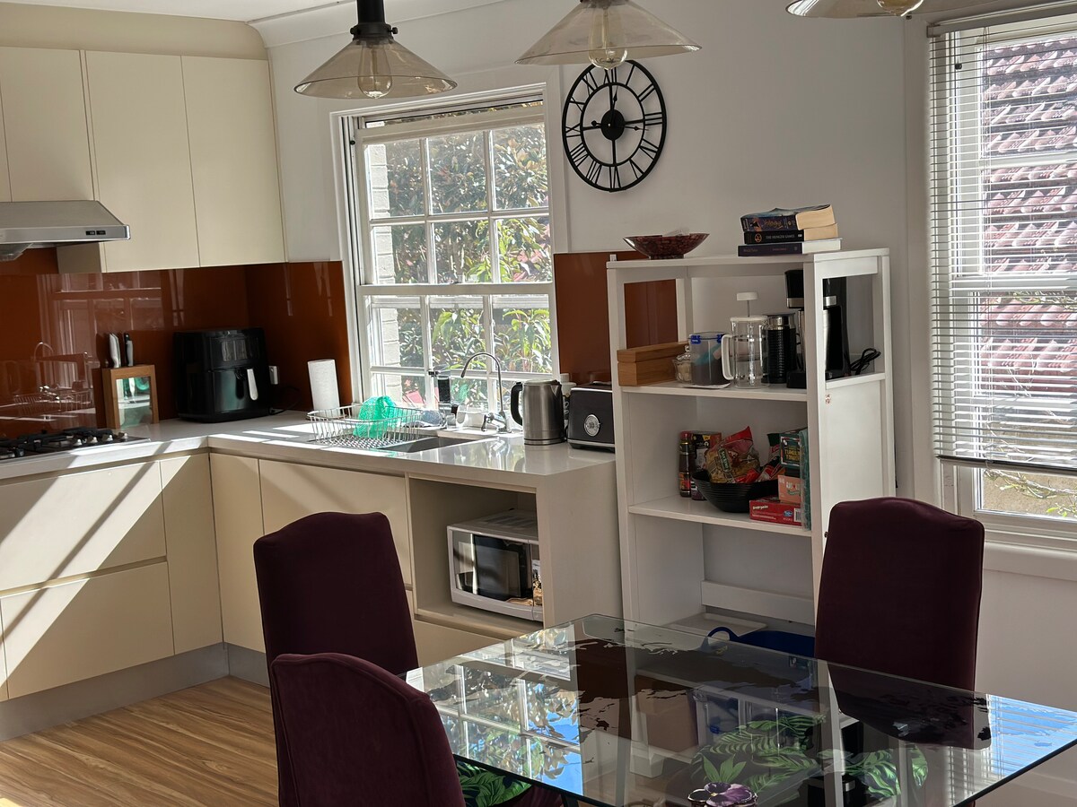 Scintillante e luminoso, questo appartamento indipendente con 1 camera da letto e 1 bagno con giardino dispone di una piccola cucina (servizi di cottura limitati: forno a microonde e accesso a un barbecue) e di erbe fresche da raccogliere fuori dalla porta. Questa spaziosa sistemazione separata a Roseville si trova in una posizione centrale per soggiorni brevi, più lunghi o regolari a Sydney. Visitare familiari o amici o andare a Sydney per lavoro? Goditi un'atmosfera rilassata con posti a sedere privati all'aperto con vista su un tranquillo giardino.