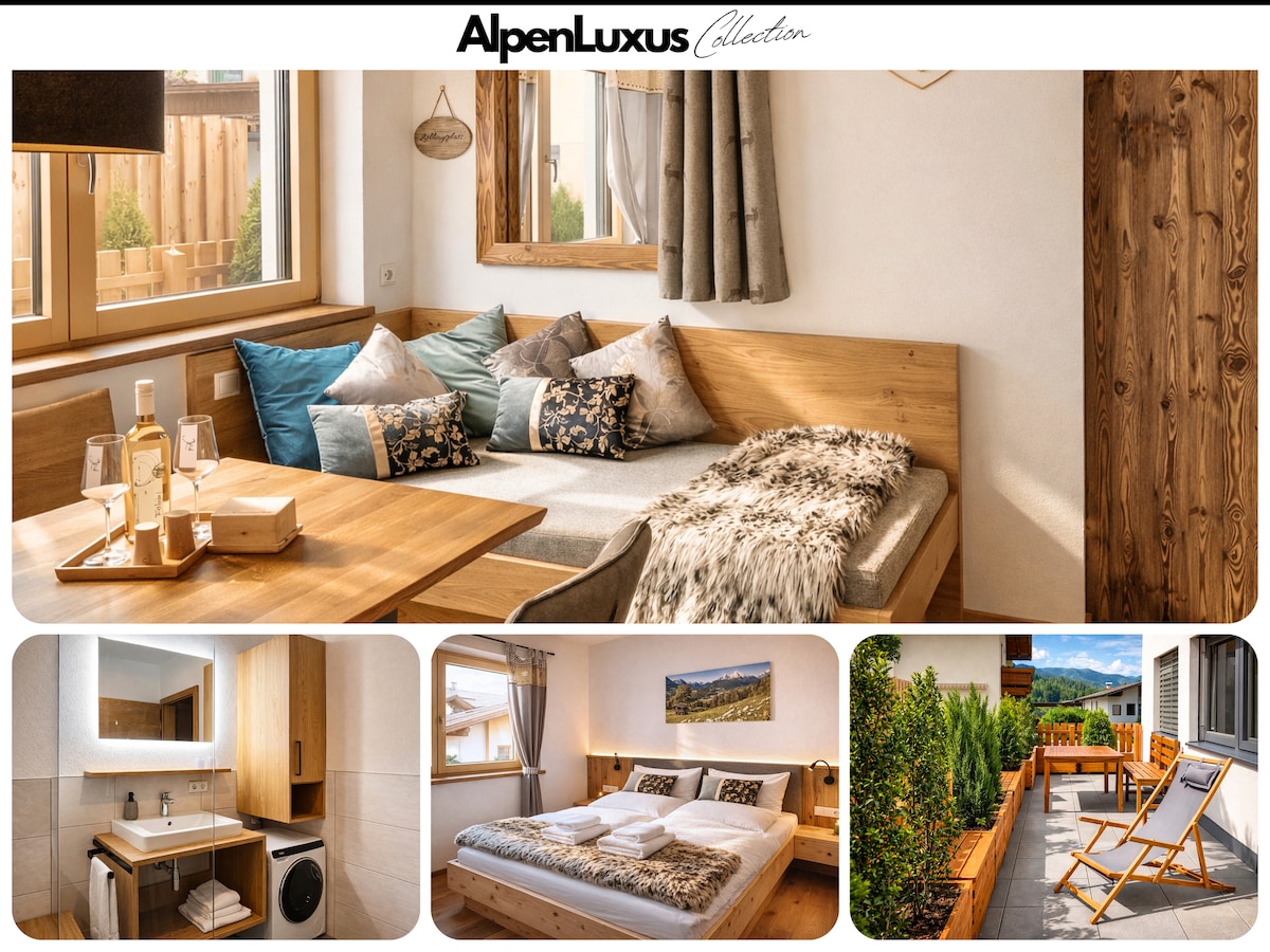 In der Kategorie Junior Suite mit Bergblick erwartet Sie ein über 30 m² großes Apartment für bis zu drei Personen mit Kingsize Doppelbett und einem qualitativ hochwertigem Einzelschlafsofa. Das Apartment verfügt über eine voll ausgestattete Küche mit gemütlicher Sitzecke, einem luxuriösen Badezimmer mit übergroßer Dusche und Waschtrockner sowie über eine 10 m² große Terrasse mit ausreichend Sitzgelegenheiten für ein herzhaftes Frühstück im Freien bei herrlichem Ausblick auf die Tiroler Bergwelt.