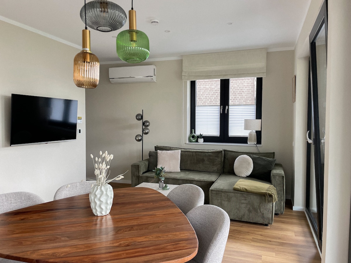 Il nostro moderno appartamento grande e luminoso a Kühlungsborn offre molto spazio per 4 - 6 persone. 1 soggiorno con una grande terrazza, 1 cucina che offre ampio spazio per cucinare con gli amici, 2 camere da letto, 1 grande bagno con doccia e vasca, 1 ospite / WC. Ogni camera dispone di un televisore. La cucina è completamente attrezzata, dalla macchina del caffè alla lavastoviglie. Il piccolo highlight per il maltempo è una PlayStation 5 che può essere utilizzata. L'appartamento è al piano terra.
