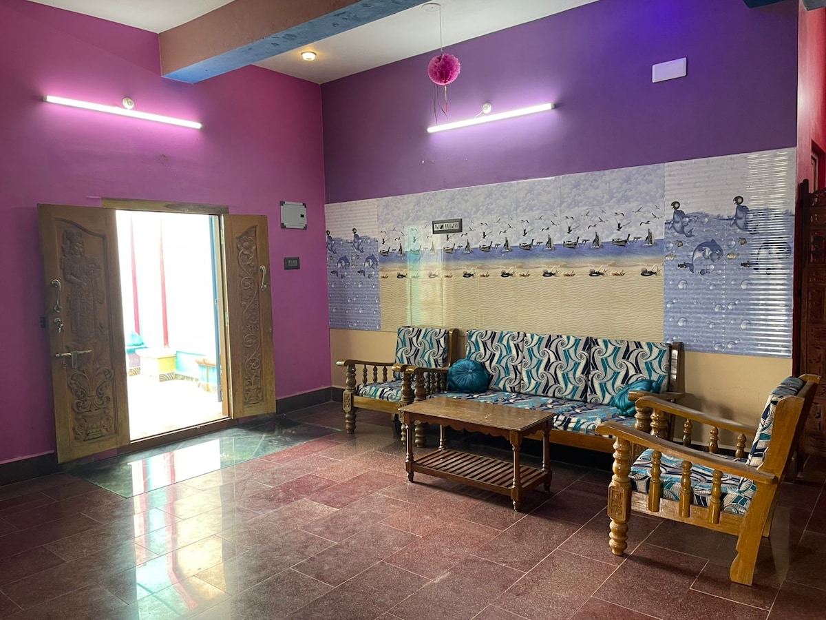 🌊 Il tuo monolocale privato sul lungomare con vista sul mare 🏝️ Accogliente monolocale con letto matrimoniale, cucina, bagno, aria condizionata e accesso diretto alla spiaggia, ideale per 2 ospiti. Situato a Serenity Beach, a 5 km da Pondicherry. Pulizia quotidiana, Wi-Fi e tranquillo fascino marittimo. ✨ Una fuga semplice e unica: leggi la descrizione completa prima di prenotare!