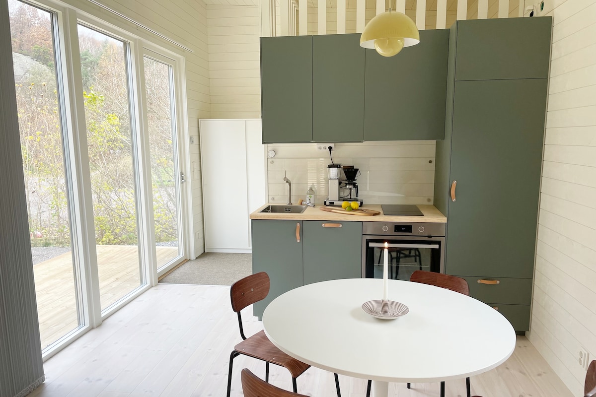 In nature surroundings you will find this 30m2 house built 2021. 2km away the bus will take you to Gothenburg in 20 minutes. Enjoy Sandsjöbacka nature reserve, trails and horse stables. Within 3km distance you will reach the sea and nice little bays.