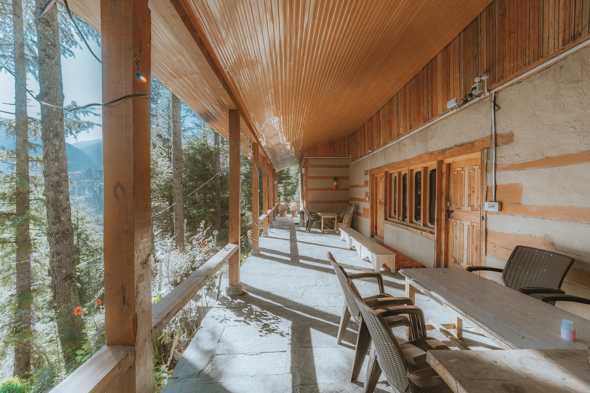 Questa accogliente ed economica baita in legno nella splendida valle di Deohari/Sainj offre un'esperienza a contatto con la natura. Potrai goderti la vista mozzafiato sui ghiacciai innevati dal lusso del tuo letto morbido e confortevole, o esplorare i fantastici sentieri che conducono a montagne, cascate e prati circostanti. Vieni a goderti la magia della natura con tutti i servizi di base per un'esperienza indimenticabile da ricordare per tutta la vita!