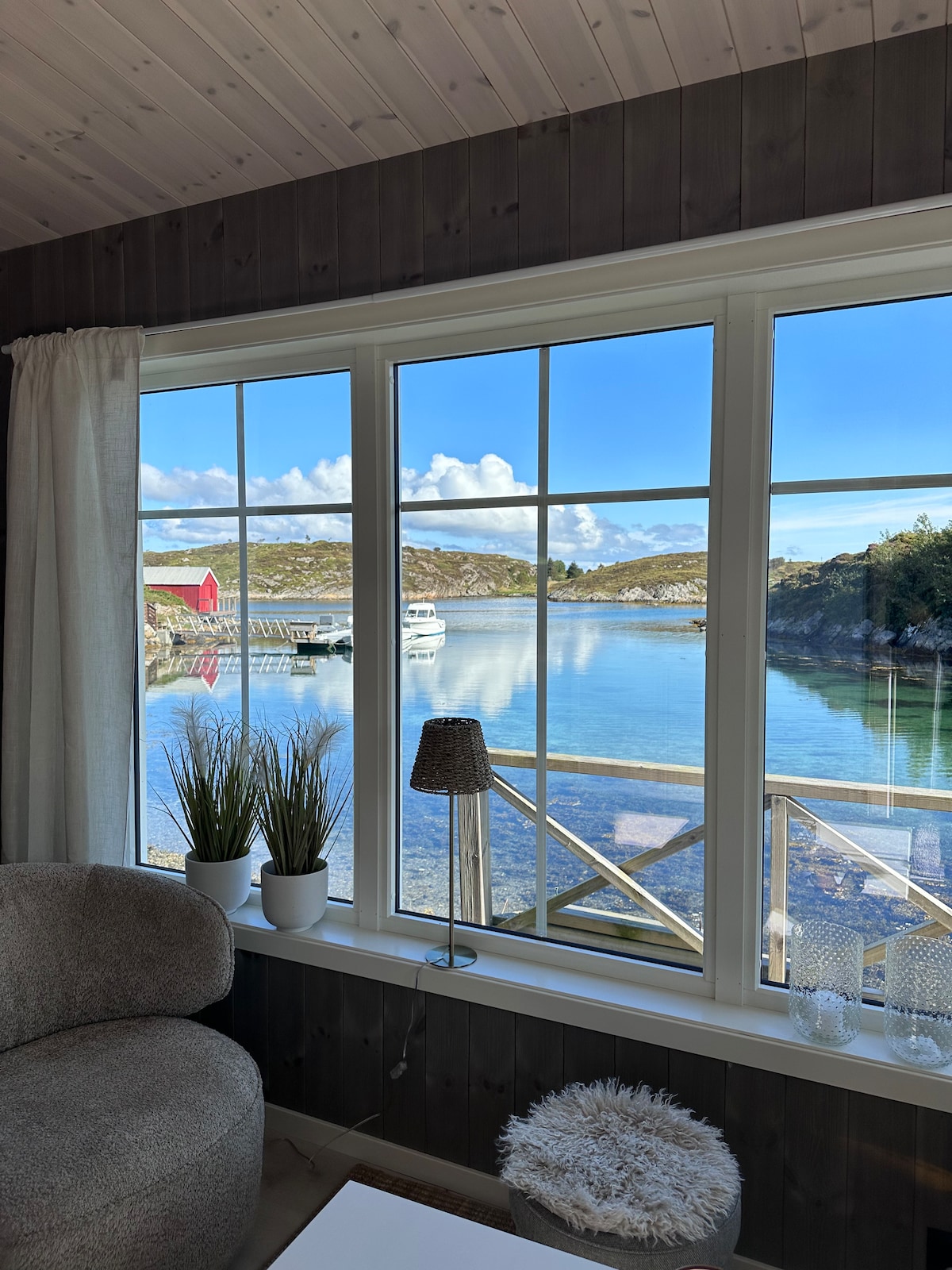 Cottage luminoso e moderno vicino al mare. Ampie finestre panoramiche con una vista fantastica. Cucina con lavastoviglie. Viene fornito con una piccola barca da pesca/barca a remi. Potete pescare o nuotare appena sotto la baita. Vasca idromassaggio a legna (l'uso deve essere organizzato, 350 NOK per 1 uso,poi 200 per riscaldamento) Il vassoio del SUP viene affittato 200 NOK per soggiorno per sup La baita si trova da sola su un naso alla fine del fiume nel fiordo surnadale. Check-in di solito dalle 15.00,ma spesso è possibile effettuare il check-in prima. A 20 minuti dal centro alpino di Sæterlia e dai sentieri di fondo
