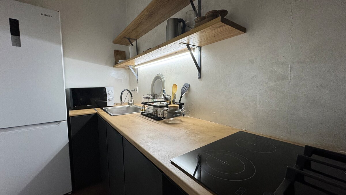 Un accogliente appartamento di tipo alberghiero nel centro della città. È sempre pulito e accogliente: la biancheria da letto fresca, un comodo materasso ortopedico e interni di design ben studiati creano una sensazione di relax, come in un buon hotel. L'appartamento è dotato di tutto il necessario: Wi-Fi, TV, asciugacapelli, ferro da stiro, lavatrice, forno a microonde, ecc.