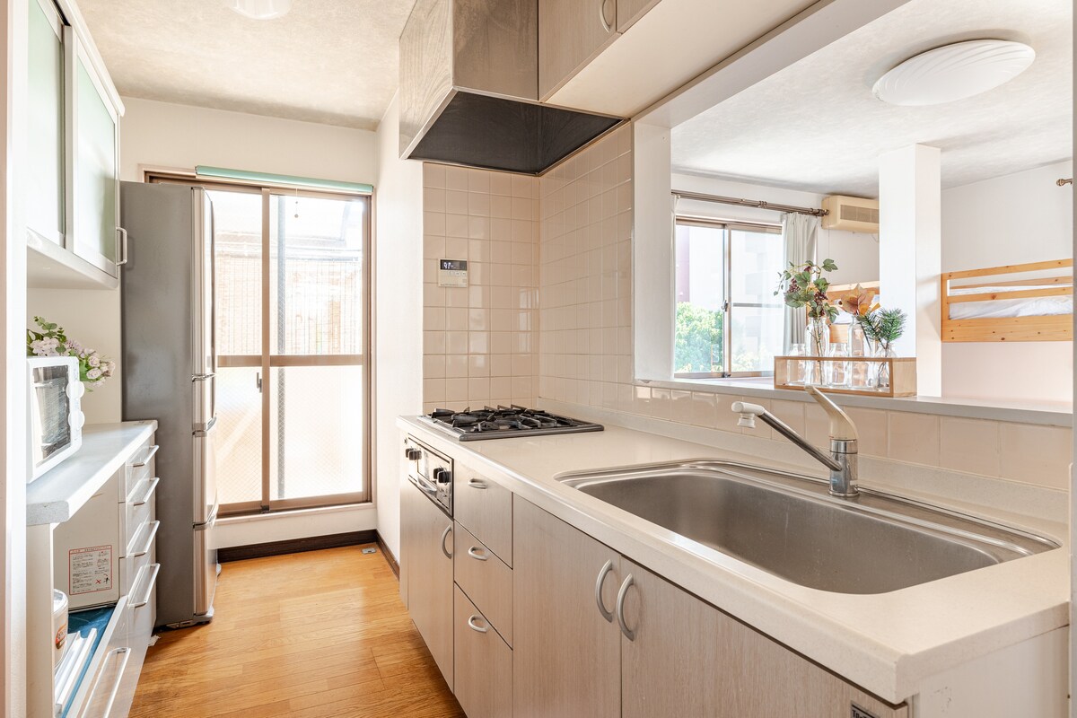 Located in Ōjima, Kōtō-ku, Tokyo, perfect for 2–7 guests. Just around 8 minutes’ walk to Ōjima Station, one train go straight to Shinjuku (18min by express train and 26min by local train) A large park in front of the house, with swings and slides is right in front — great for families. Fully equipped with IH kitchen, 140L fridge, microwave, rice cooker, 32″ smart TV, air conditioner, and dining table.