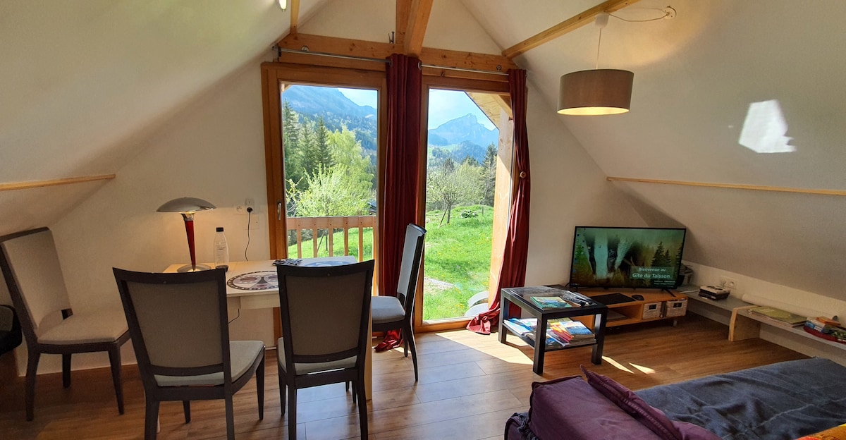 Ti ospiteremo tutto l'anno in un grazioso, accogliente fienile ristrutturato situato in un piccolo villaggio nel cuore della catena montuosa della Chartreuse. Il monolocale è composto da una camera da letto al primo piano con bagno (doccia) e, al piano terra, da una cucina con forno a microonde e piano cottura elettrico. Tieni presente che i servizi igienici si trovano al piano terra. Lenzuola e asciugamani sono inclusi. Colazione fatta in casa non inclusa nel prezzo.