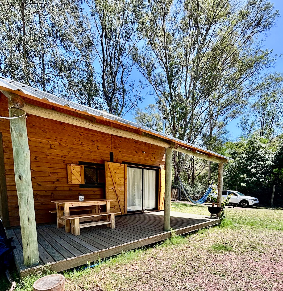 Accogliente capanna nel bosco di Punta Ballena. Ideale per staccare la spina e riposare in un ambiente naturale e molto tranquillo. A pochi passi dall'Arboretum Lussich, ideale per passeggiate, gite e per gustare un caffè con una deliziosa torta di La Checa. A pochi minuti dalle spiagge di Solanas, Tío Tom, Las Grutas, Chihuahua. Abbiamo un set di sedie a sdraio e ombrellone con protezione UV. In inverno ti aspettiamo con il fuoco acceso. La casa è completamente attrezzata per farvi sentire a vostro agio come a casa vostra.