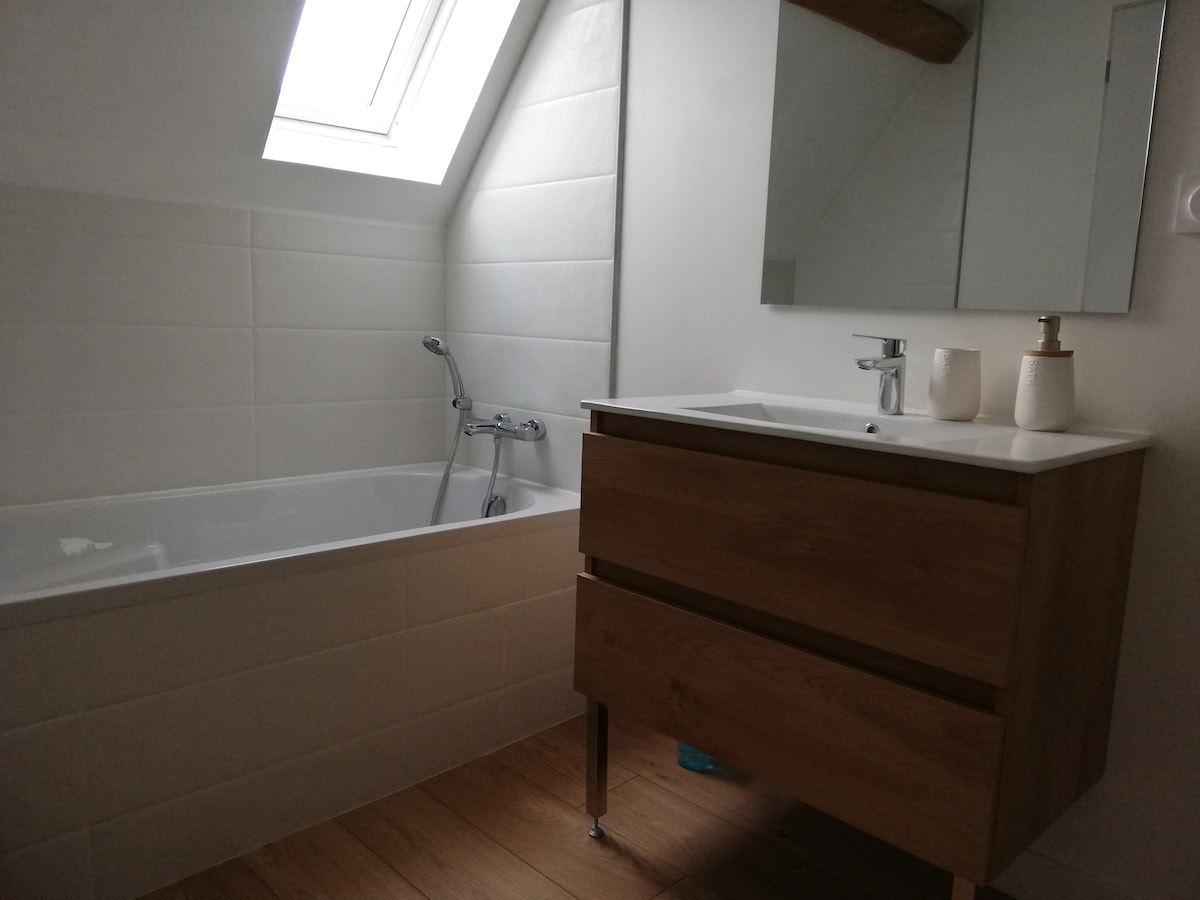 Venite a rilassarvi in campagna in questo antico fienile dotato di tutti i comfort e molto ben attrezzato. Idealmente situato a solo 1 km dalla grande foresta di Orléans, a 20 minuti dalle rive della Loira e dal centro di Orléans. La casa è composta da una cucina completamente attrezzata che si affaccia su un soggiorno. C'è un bagno con doccia e lavatrice biancheria, servizi igienici indipendenti e una camera molto spaziosa. Gli ospiti possono inoltre usufruire della terrazza per mangiare. Parcheggio previsto per un'auto.