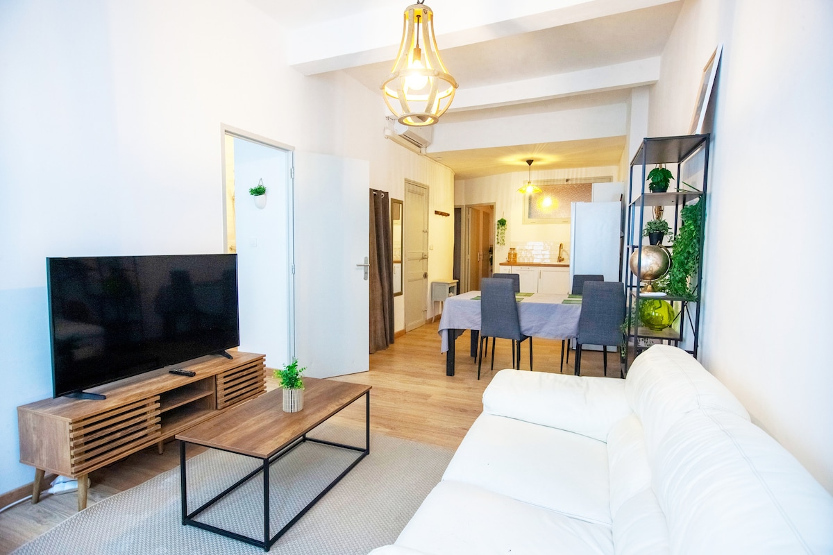 Grazioso T2 di 25 m2 al 1 ° piano ( senza ascensore ) con zona notte separata , spazio molto ben ottimizzato. Ristrutturato da giugno ad agosto 2019. Deco pieno di carattere con tomettes al pavimento originale, piastrelle in cemento nella entrata del palazzo, piastrelle marocchine nel bagno. Posizione ideale, centro storico della città di fronte al Caffè dell'orologio aperto 7/7. Biancheria da letto di qualità, materiali mediterranei.