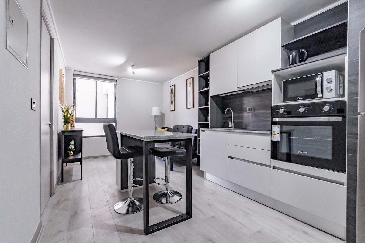 Rilassati in questo spazio tranquillo ed elegante. scopri il comfort di questo nuovo appartamento a Santiago del Cile. CON PARCHEGGIO ideale per un massimo di 2 persone. Dispone di 1 camera da letto, bagno, cucina completa, terrazza, wifi 5 G, TV 55 pollici. L'edificio offre piscina, palestra, gazebo e rastrelliere per biciclette A POCHI PASSI DALLA METRO EL PARRON. Nelle vicinanze troverete: bar, punti di ristoro 24 ore su 24, farmacie, supermercati, ristoranti. LA TUA SCELTA PERFETTA